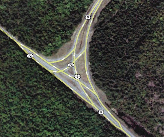 My first stop was Peter VanKeuren, public information officer for the state Department of Transportation in Albany. After a little research, he explained that the intersection was built in 1958, using a design that has been instituted (with slightly variations) in other areas, such as Cairo down in the Catskills. That was already news to me, because I always thought it had something to do with preparations for the 1980 Olympics in Lake Placid.