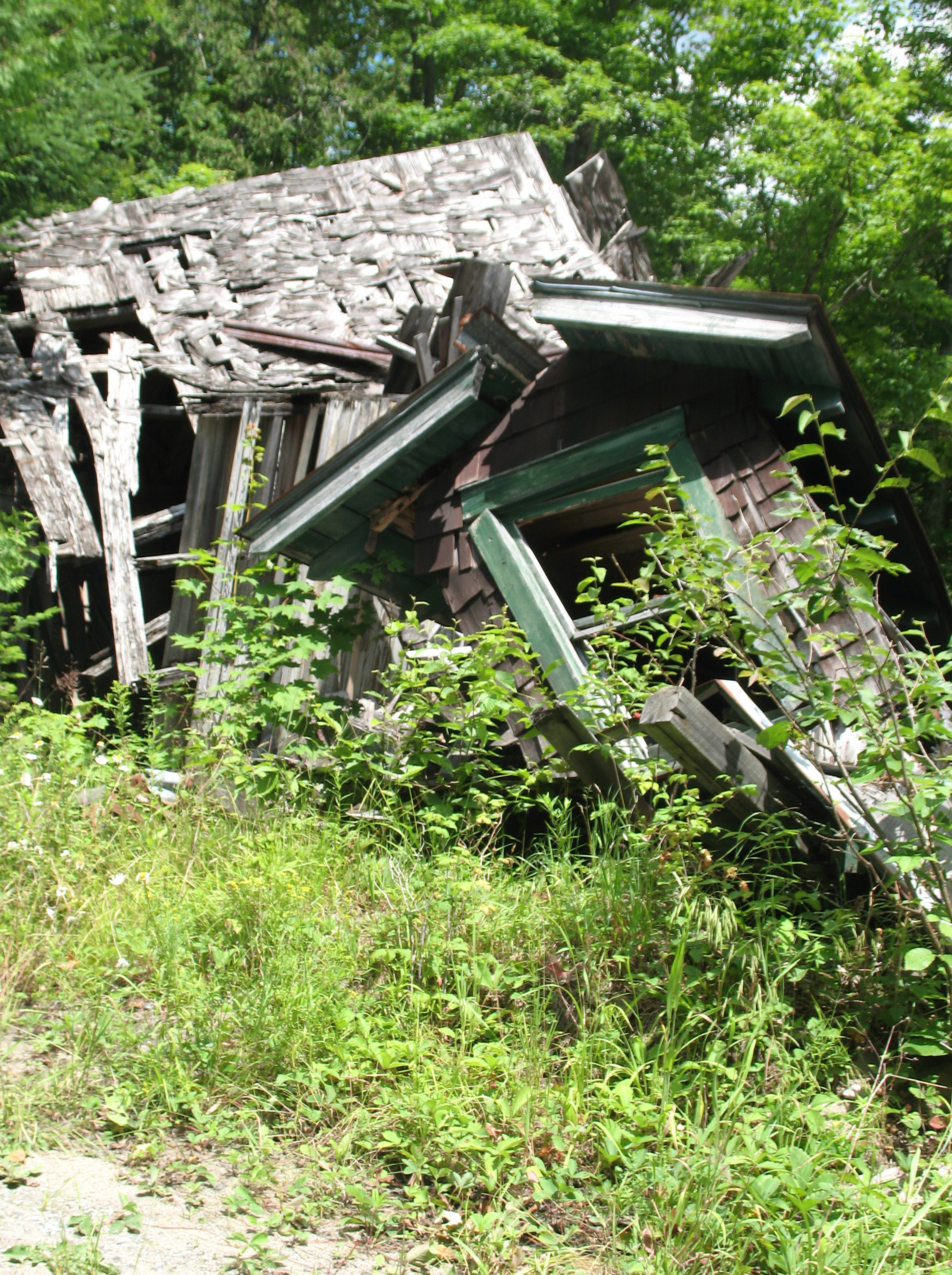 In the woods to the east of the parking area, mere feet from its gravel edge, lies a pile of rock shaped like a haystack, surrounded and run through by forest re-growth. It is hardly ever noticed by hikers and little noted by those who do happen to glance at it through the trees. But look again: the rock is hewn and there are iron bars sprouting forth at various angles here and there, all akimbo. This was a structure once, doomed by lightning, ravaged by floods. It held the hopes of men, this edifice. It held the promise of riches, a promise that cruelly and inexorably retreated beyond the reach of their nineteenth-century human enterprise, their nearly unimaginable toil. Now it is forgotten.