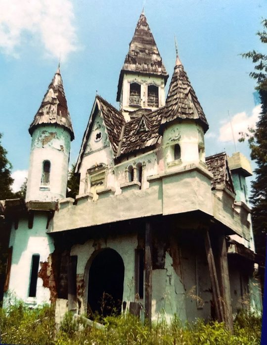The decaying castle shows the devastation of Tropical Storm Irene (2011) and subsequent decay. Photo Credit: Adirondack History Museum.